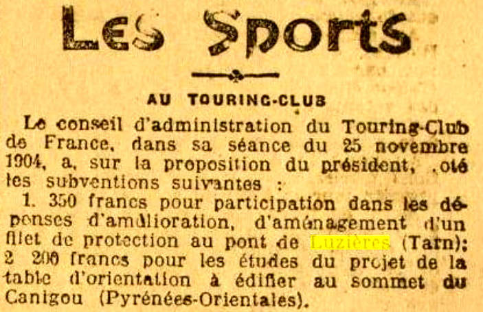 (saut de pont sans élastique ?) La Dépêche rapporte la décision du Touring-Club