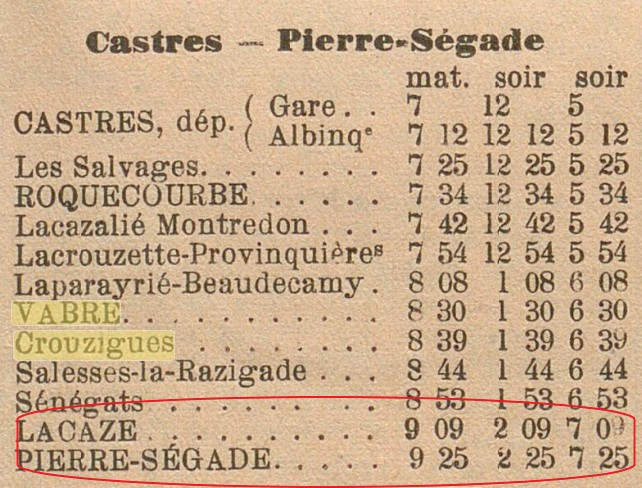 haltes et arrêts à établir sur la partie de la ligne de Castres à