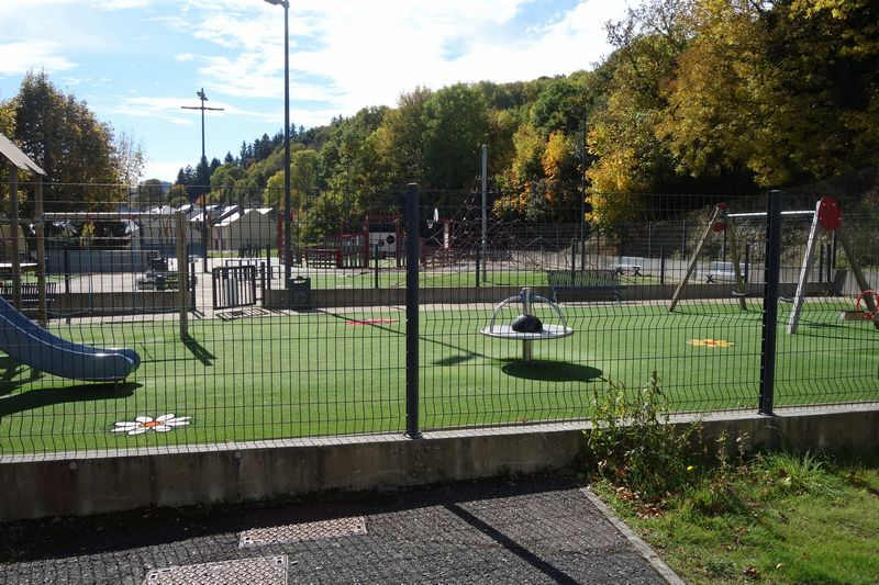 Un parc de jeux pour enfants et des installations sportives occupent l'extrémité