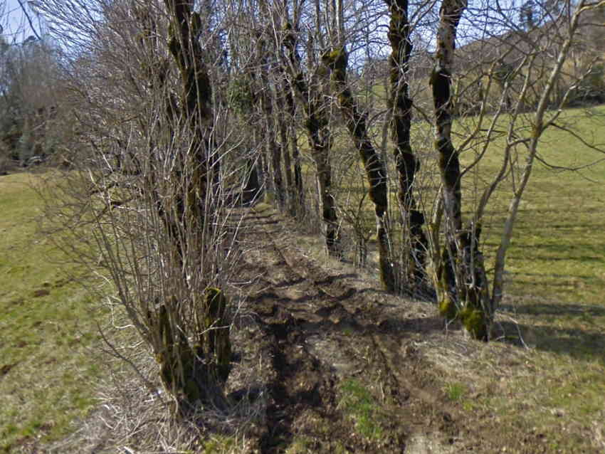 traverse abrité d'aubépines et de houx.