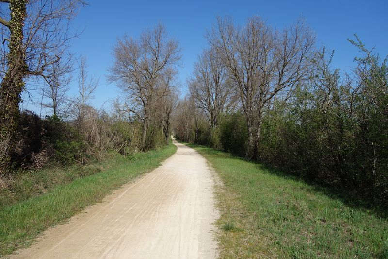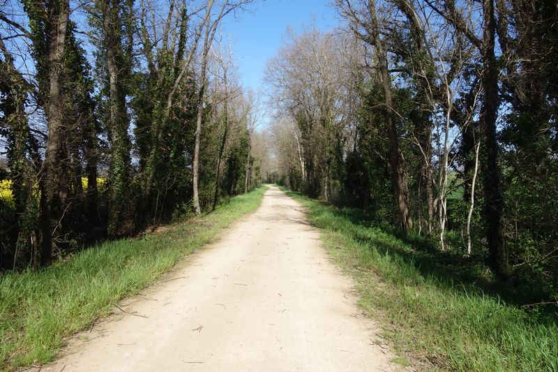 La chaussée en sable stabilisé poursuit la traversée du territoire de Jonquières.