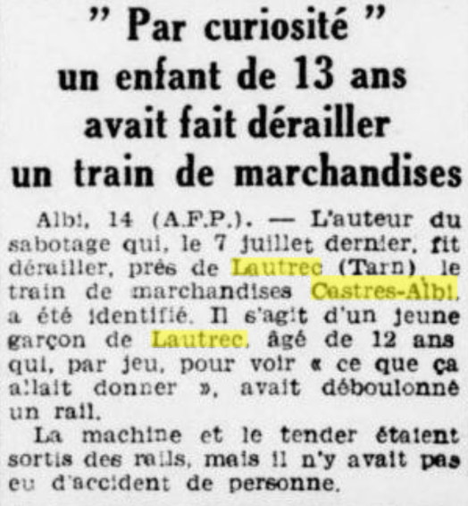 Albi, 14 (A.F.P.). — L'auteur du sabotage qui, le 7 juillet dernier,