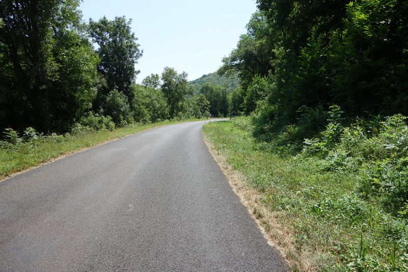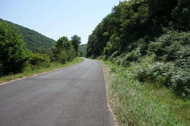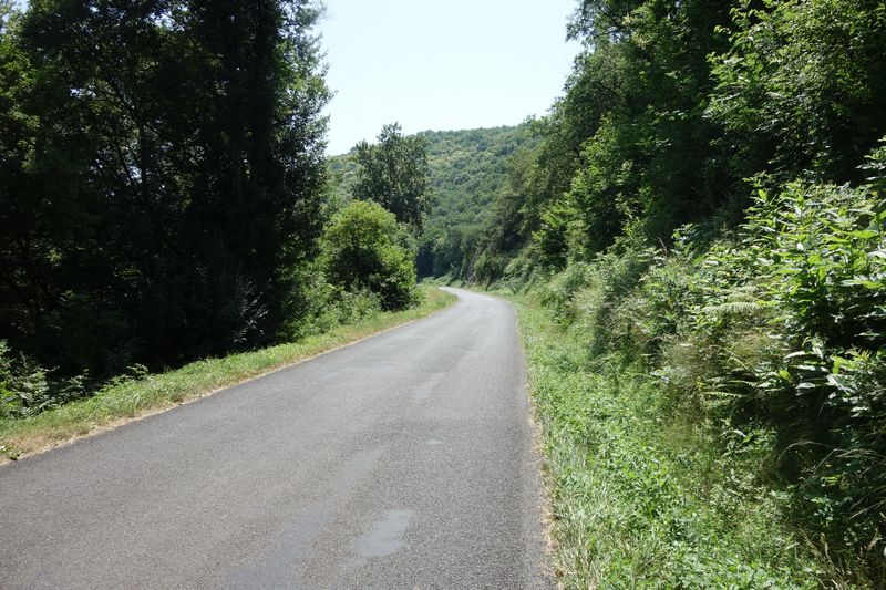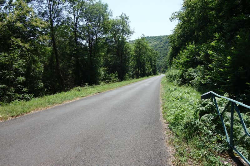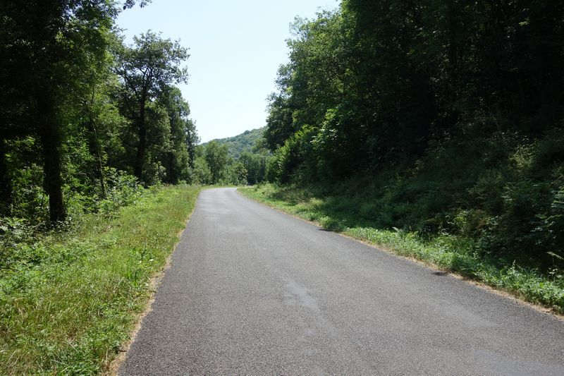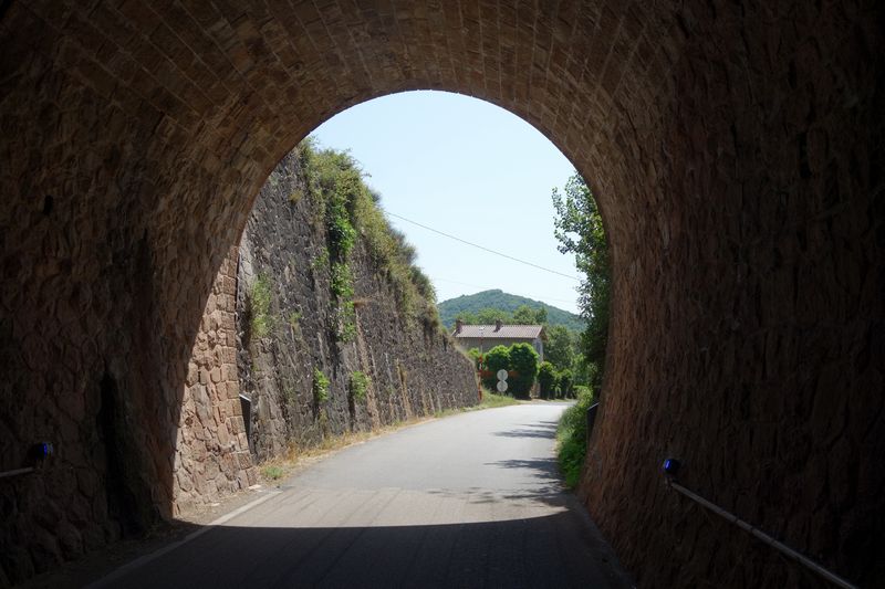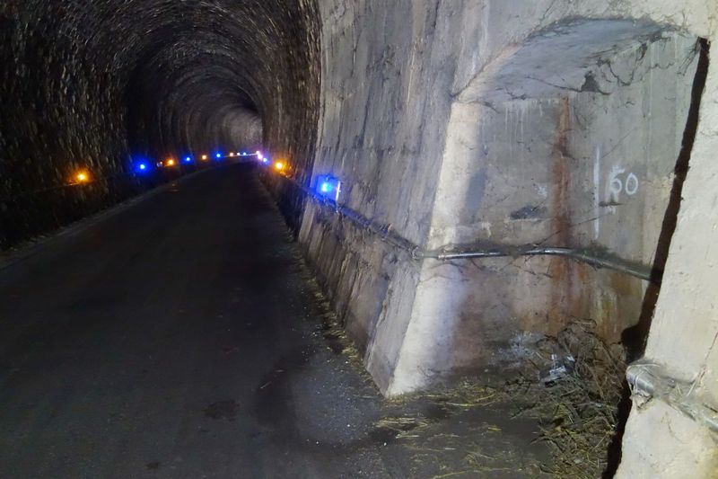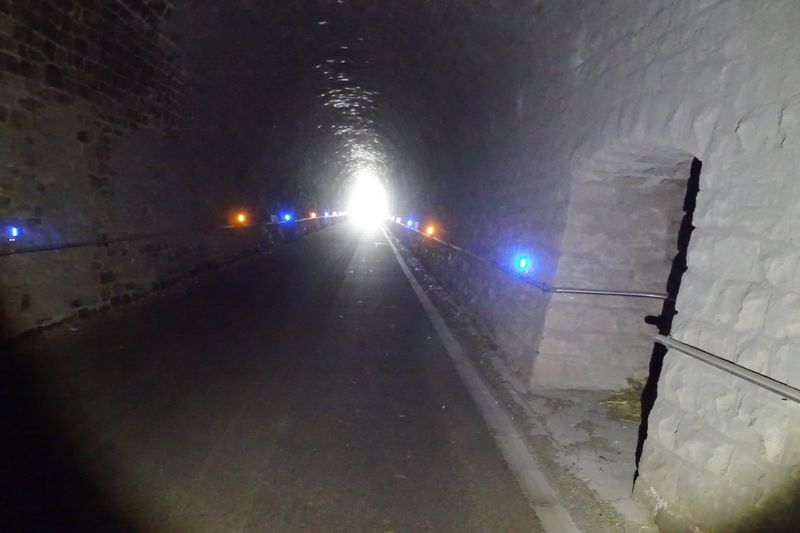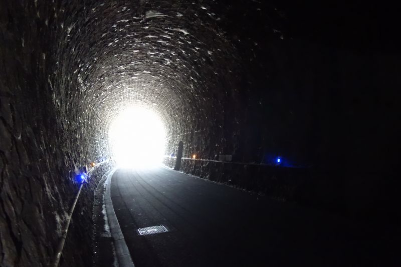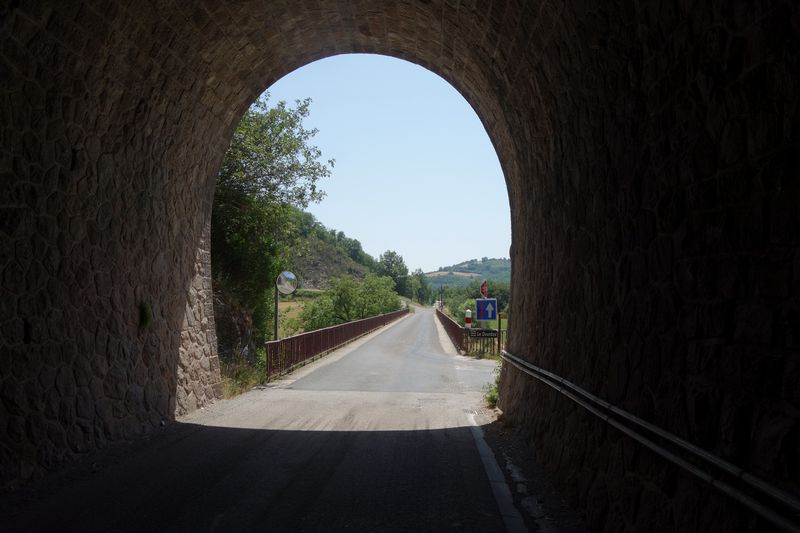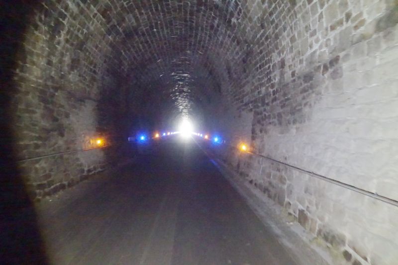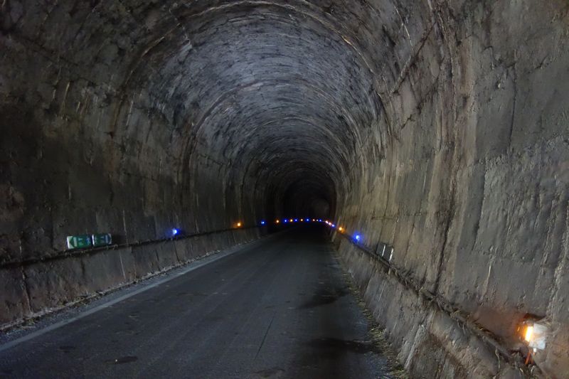 La D 200 s'avance vers la bouche obscure d'un souterrain.