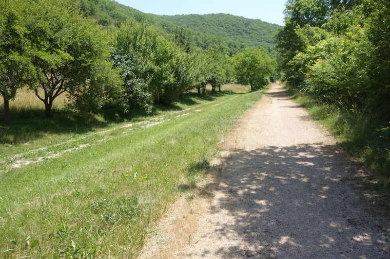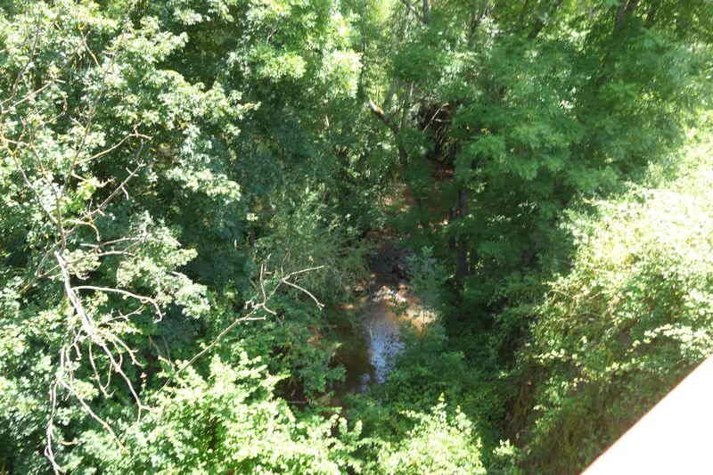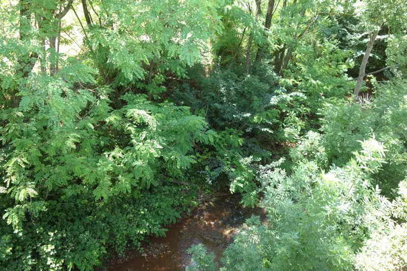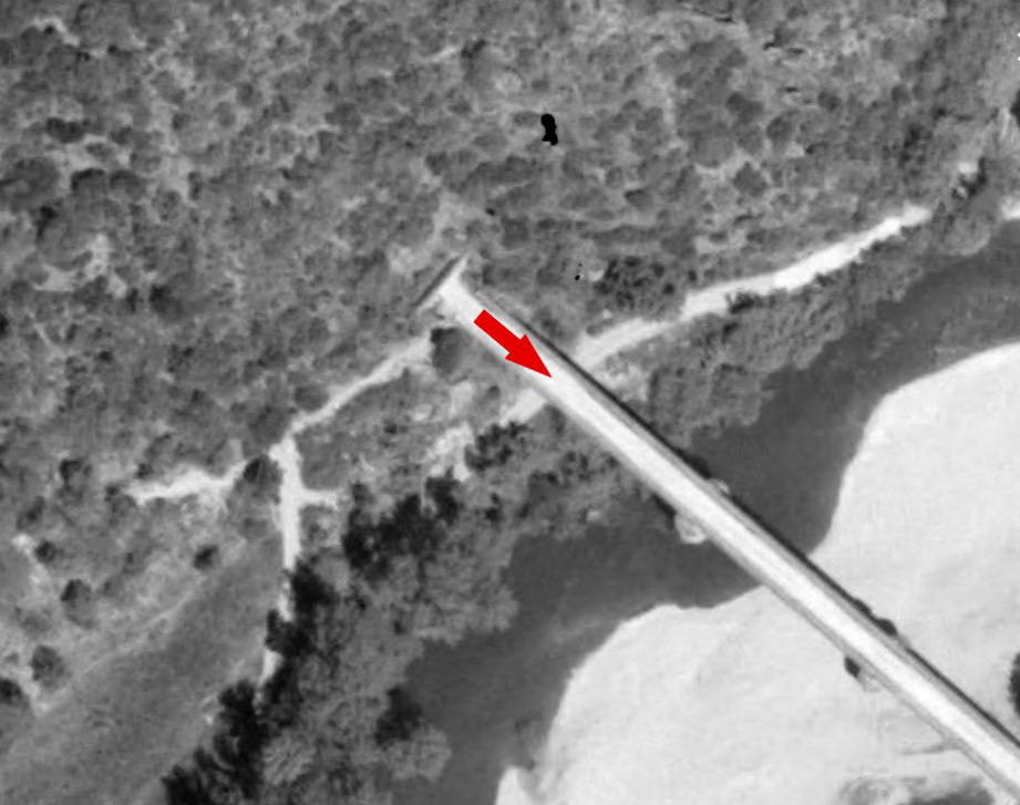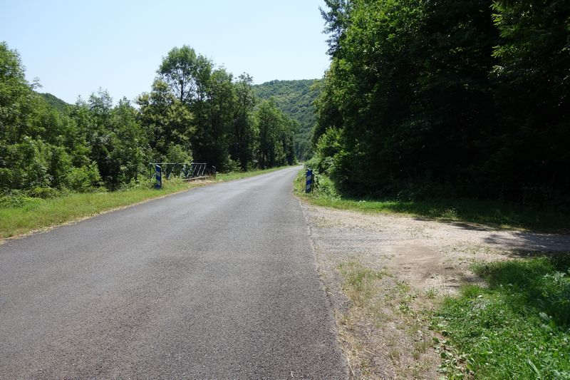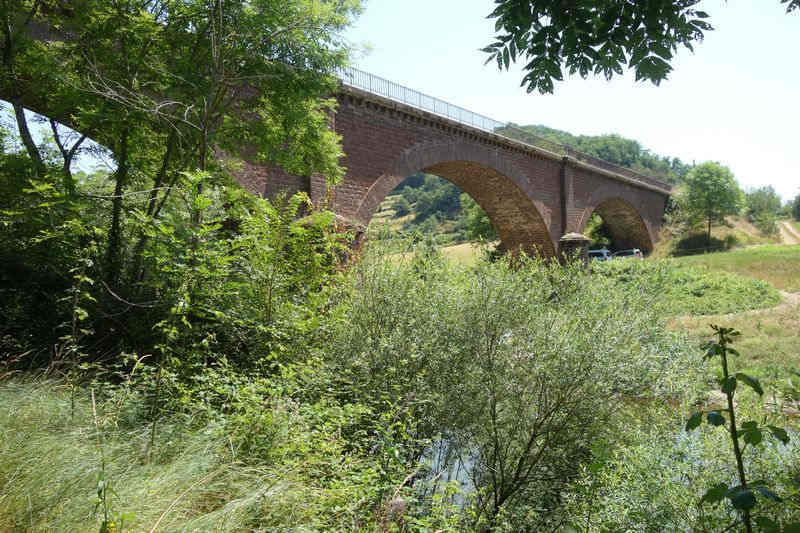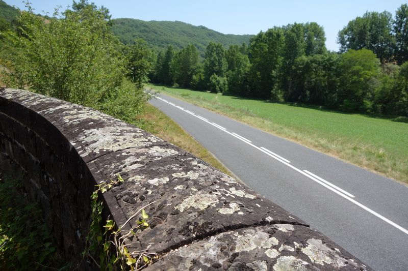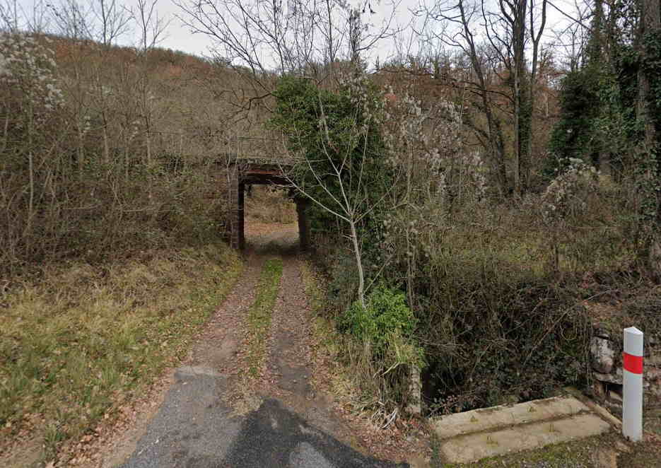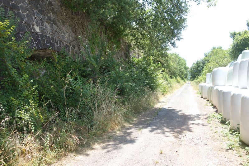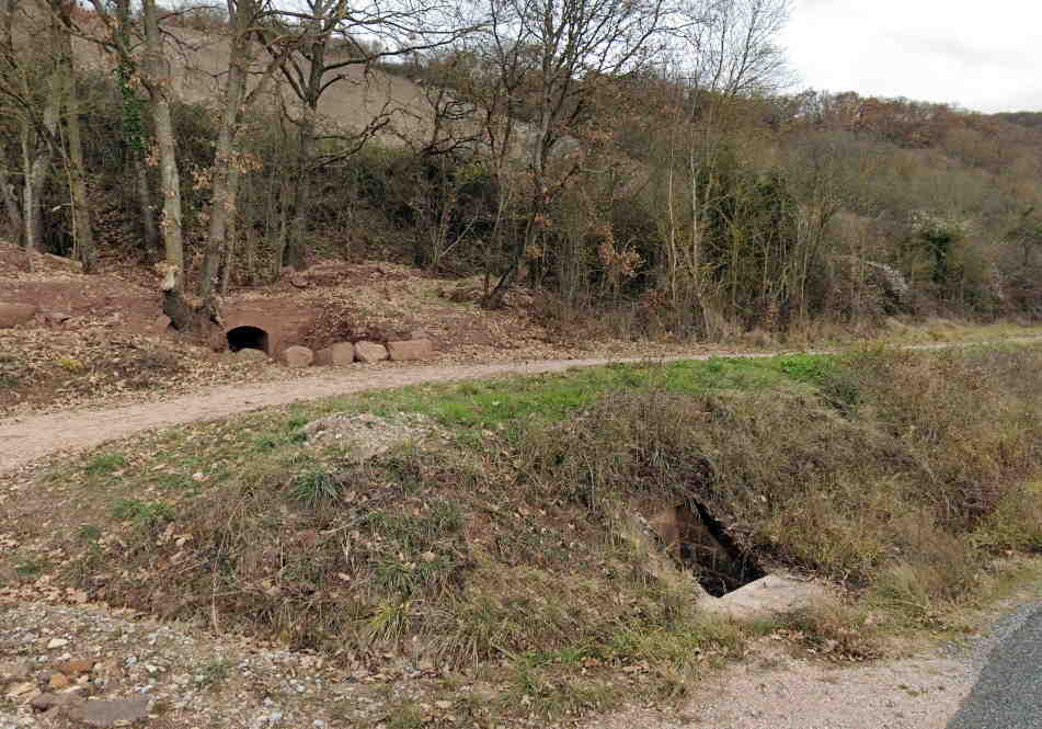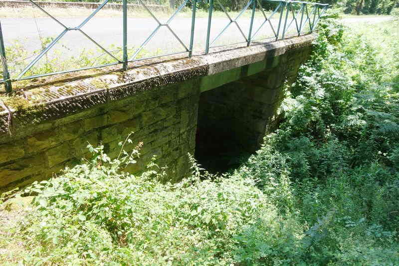 en contrebas d'un ponceau soutenant un ancien chemin latéral.