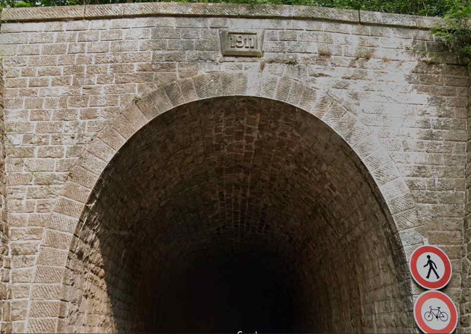 Au sujet de ce tunnel, figurant sur un projet de ligne de 1873, dont le portail d'entrée porte la date de 1913 et en sortie celle de 1911,