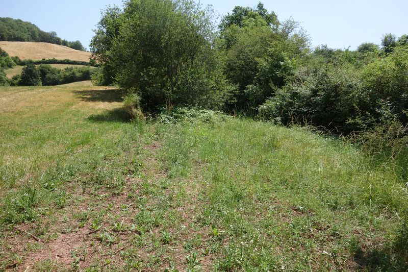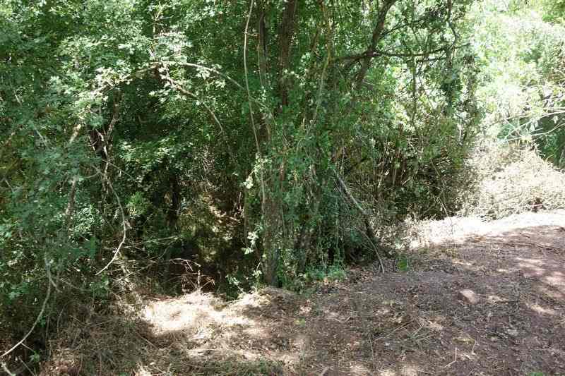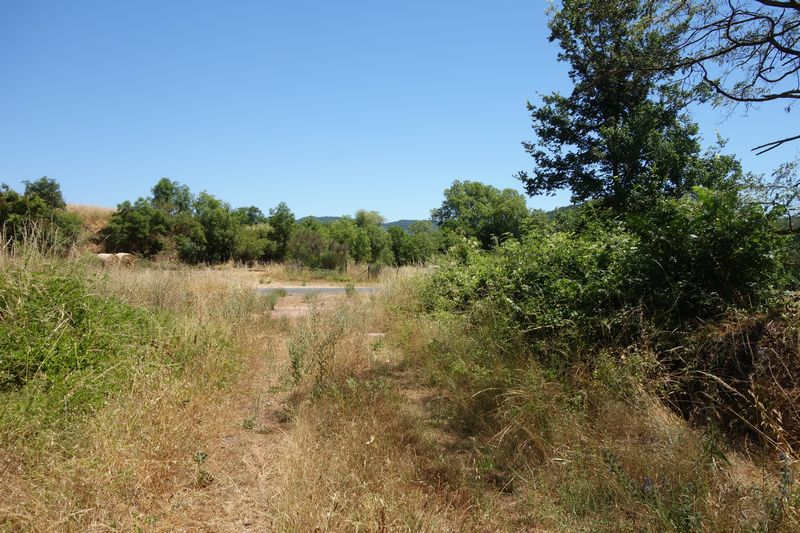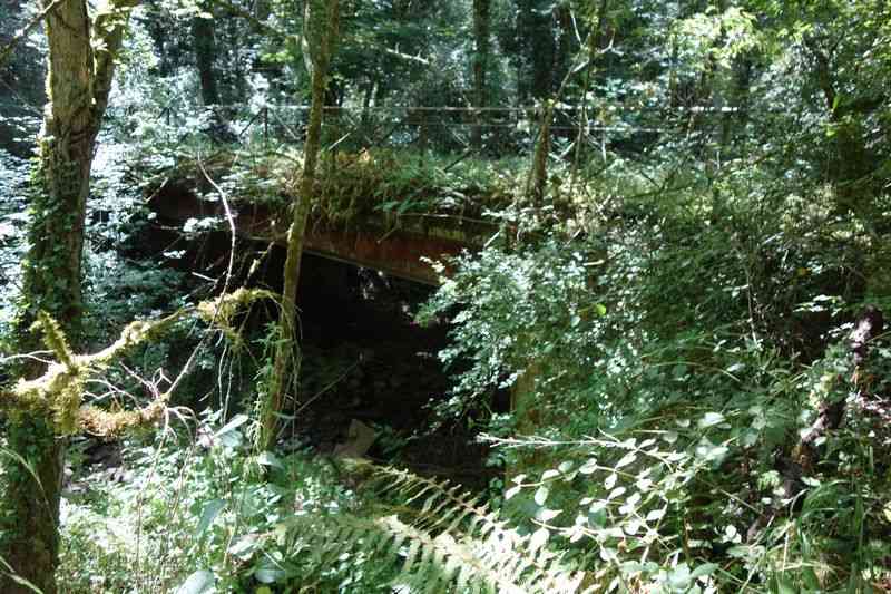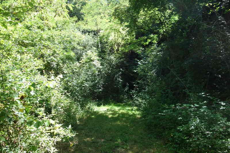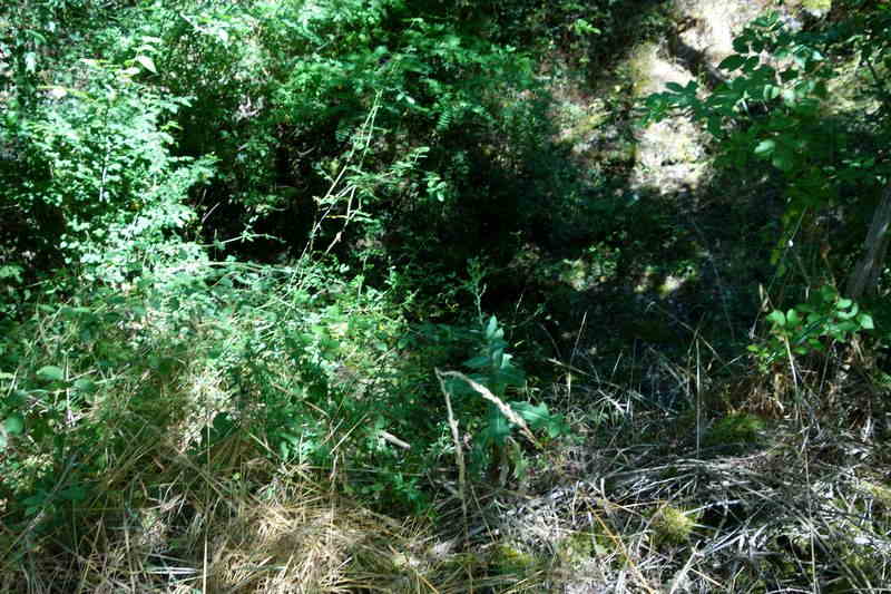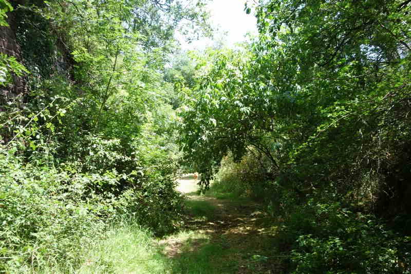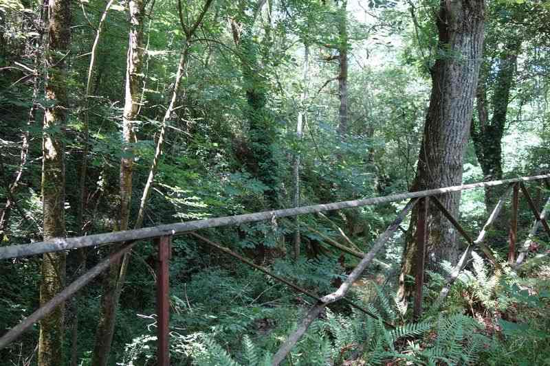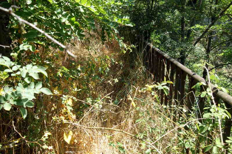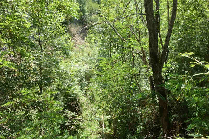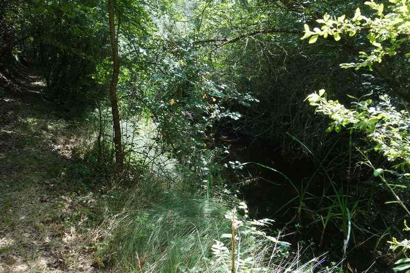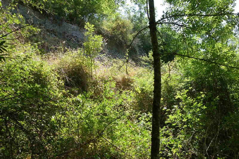 se faufile dans l'herbe, dominée par le mur de soutien de l'actuelle route de Donacoste,