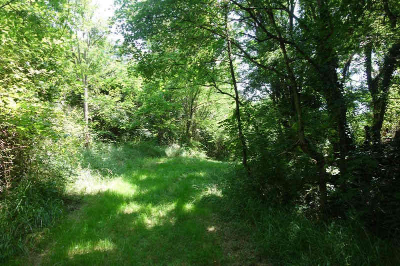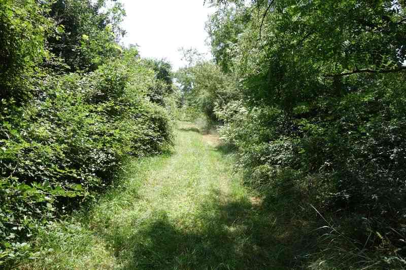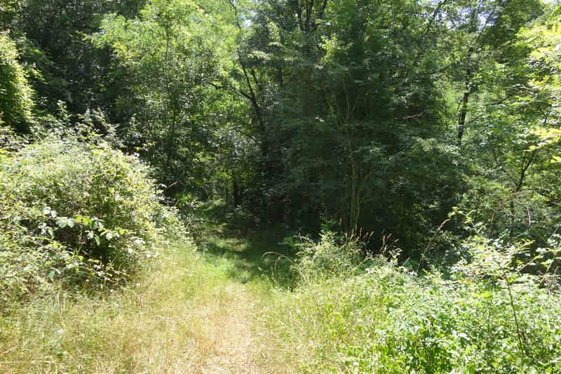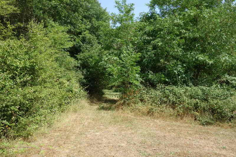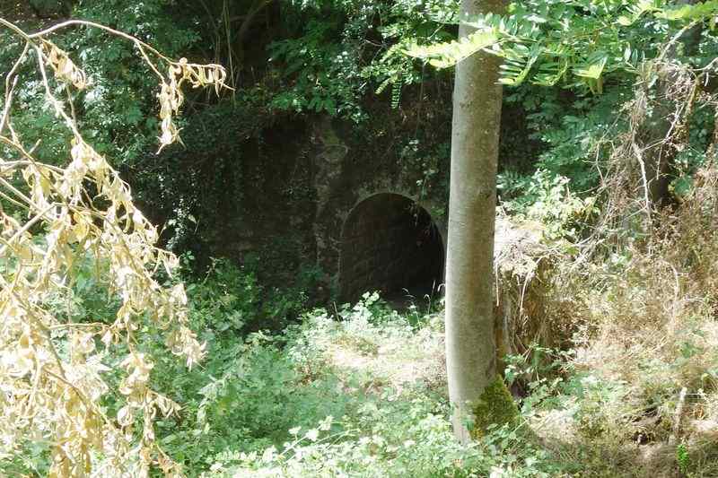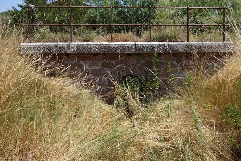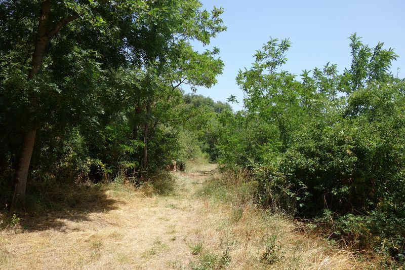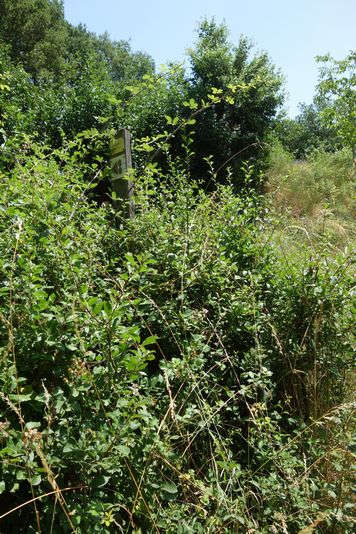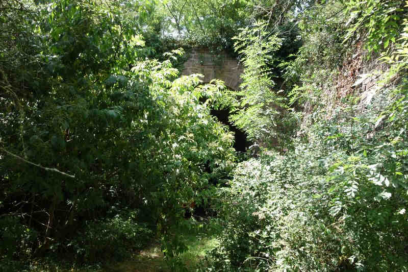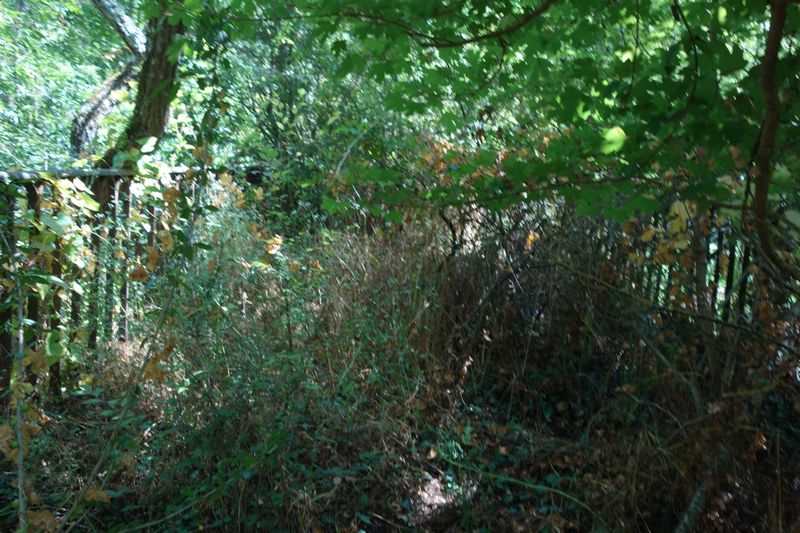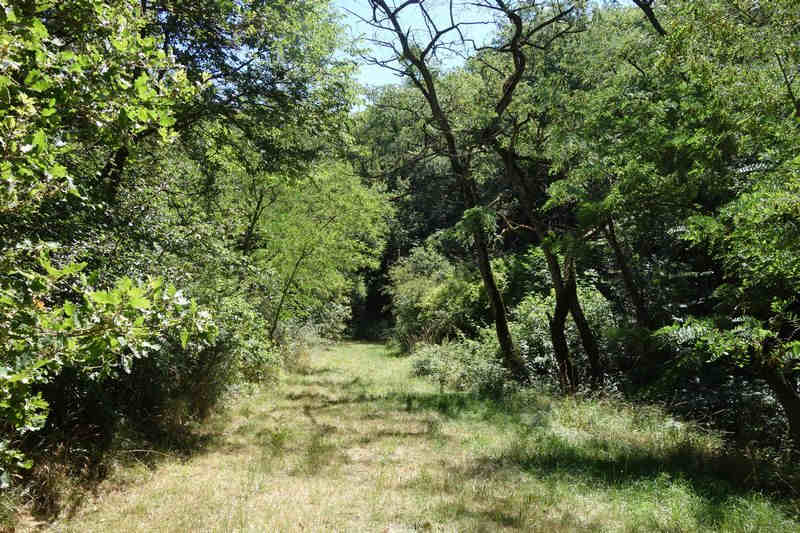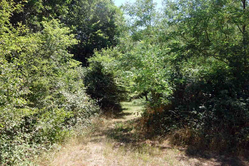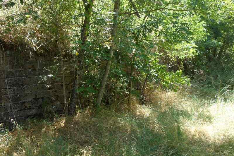 se faufile dans l'herbe, dominée par le mur de soutien de l'actuelle route de Donacoste,