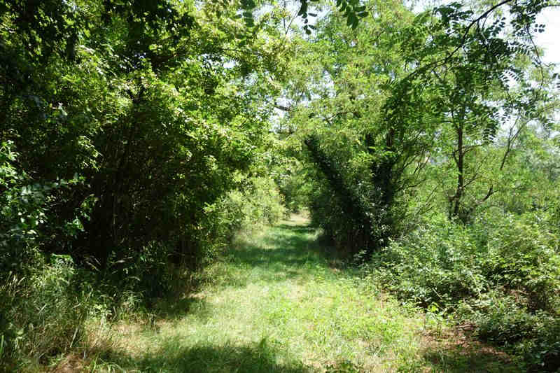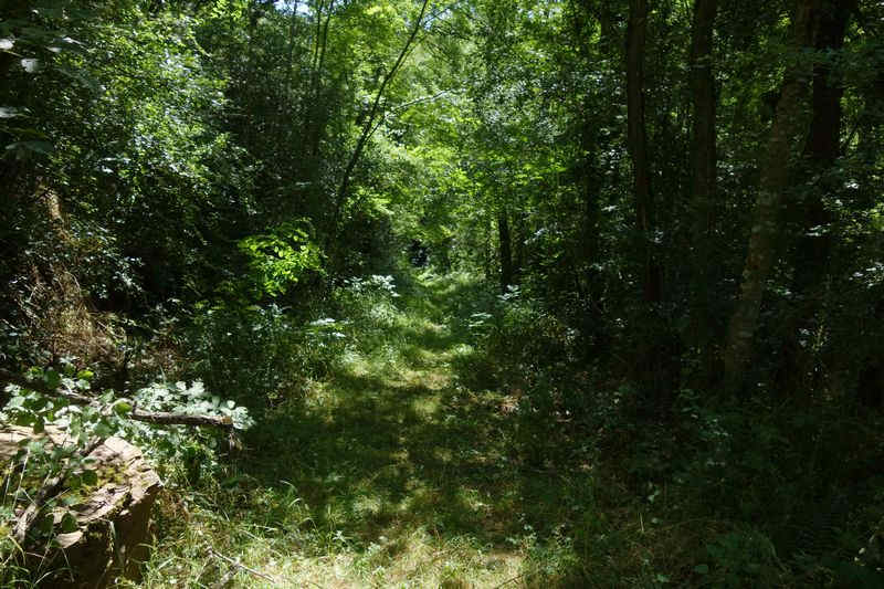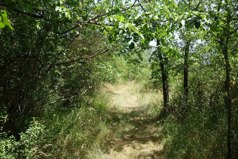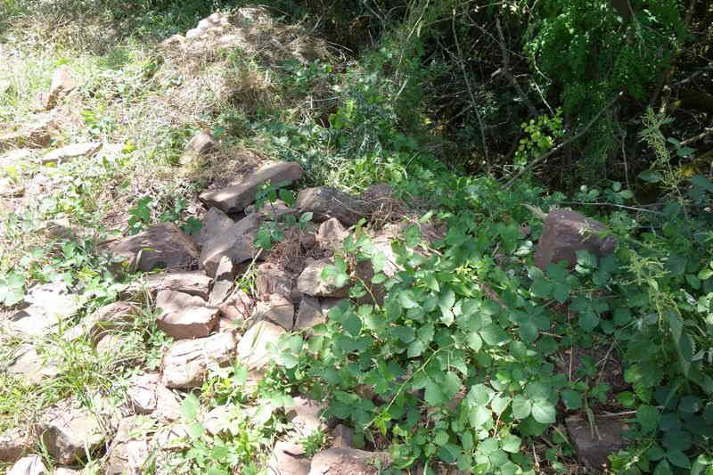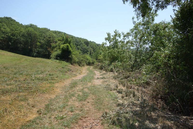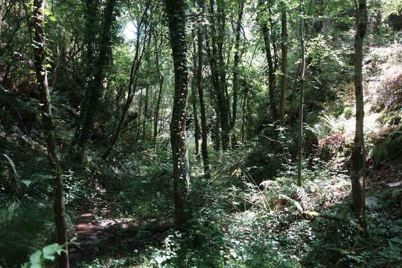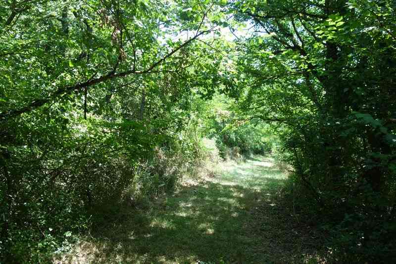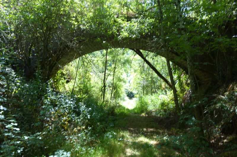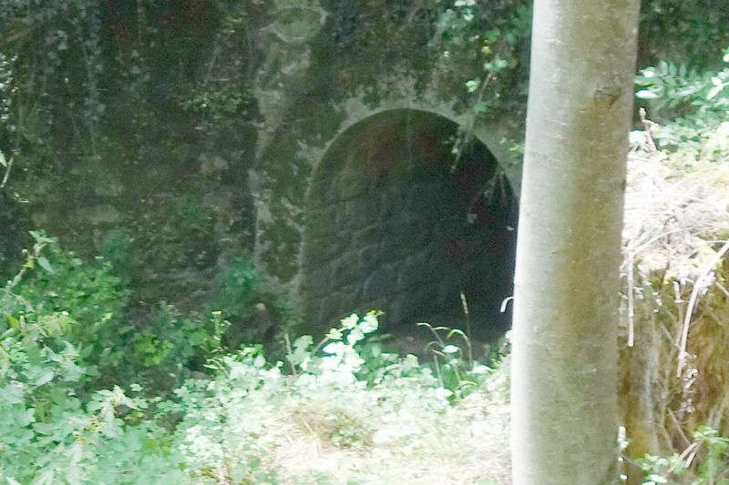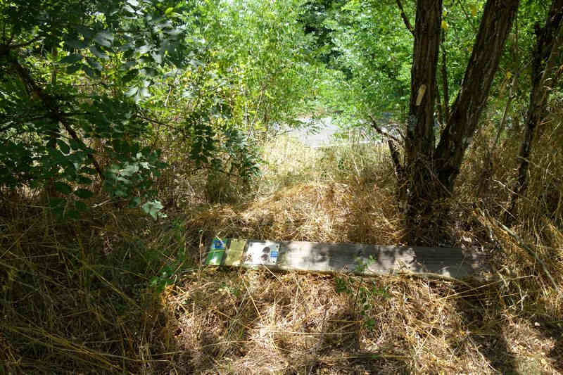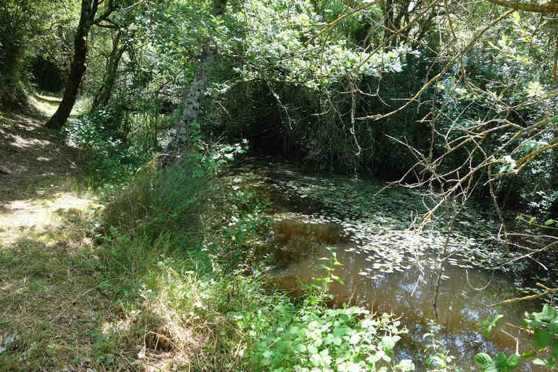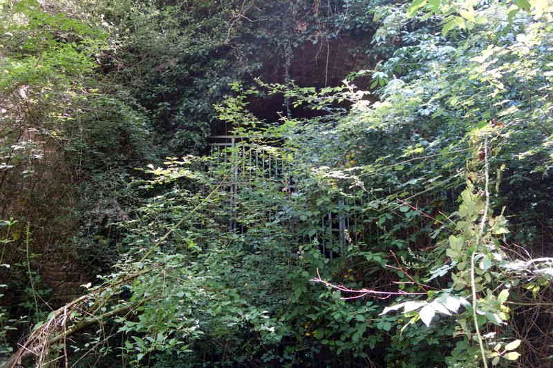se faufile dans l'herbe, dominée par le mur de soutien de l'actuelle route de Donacoste,