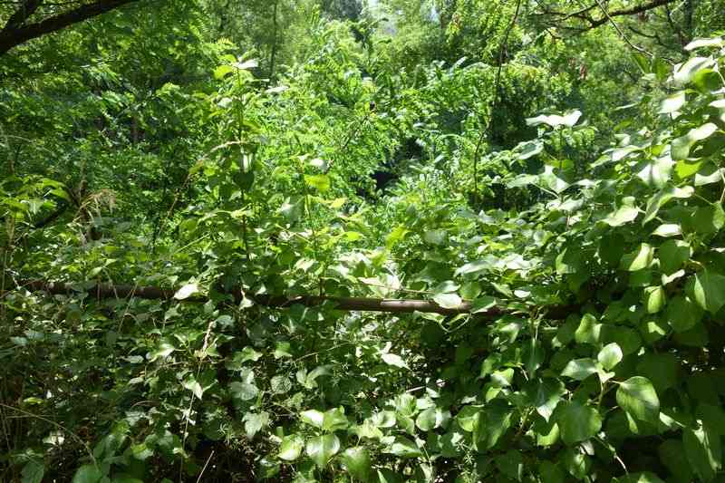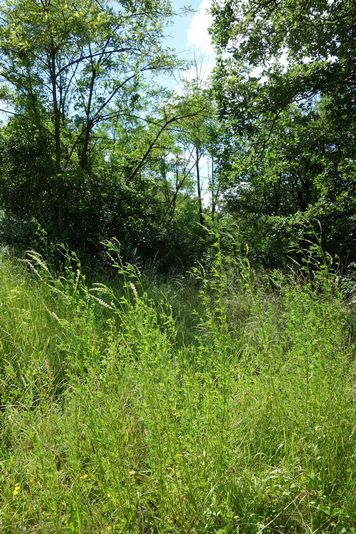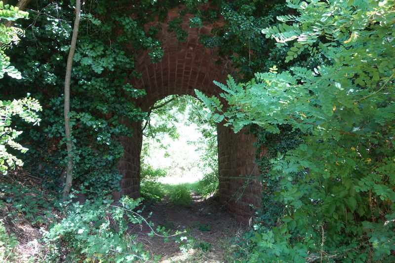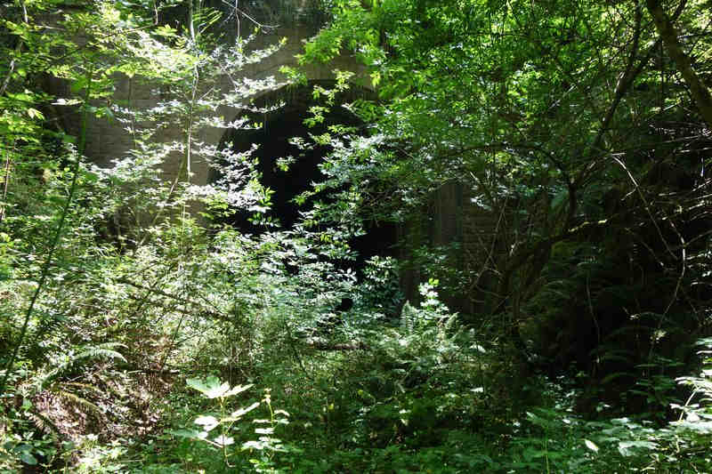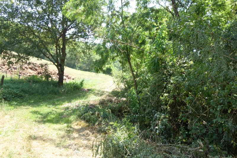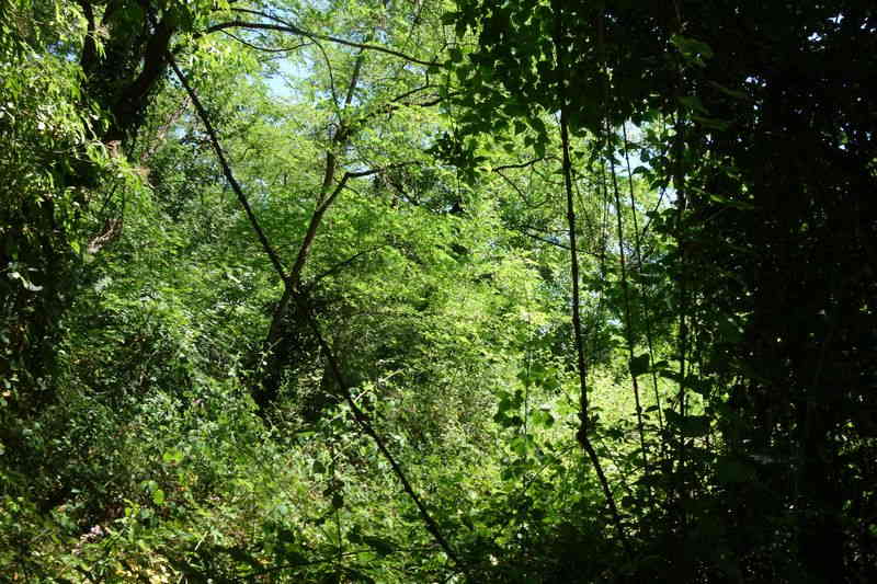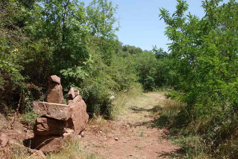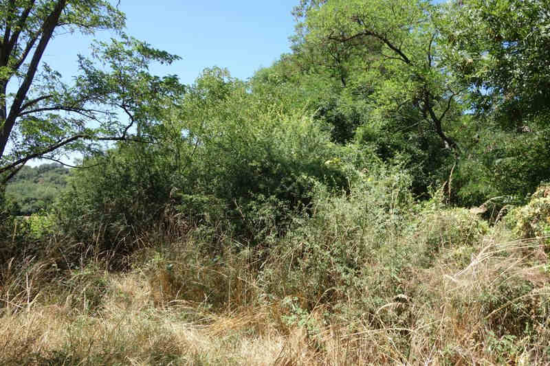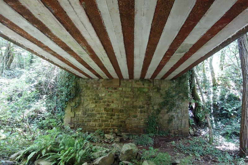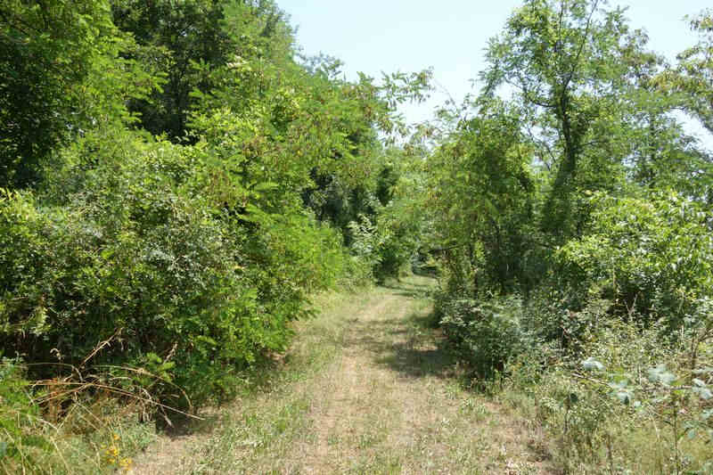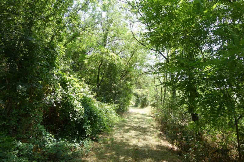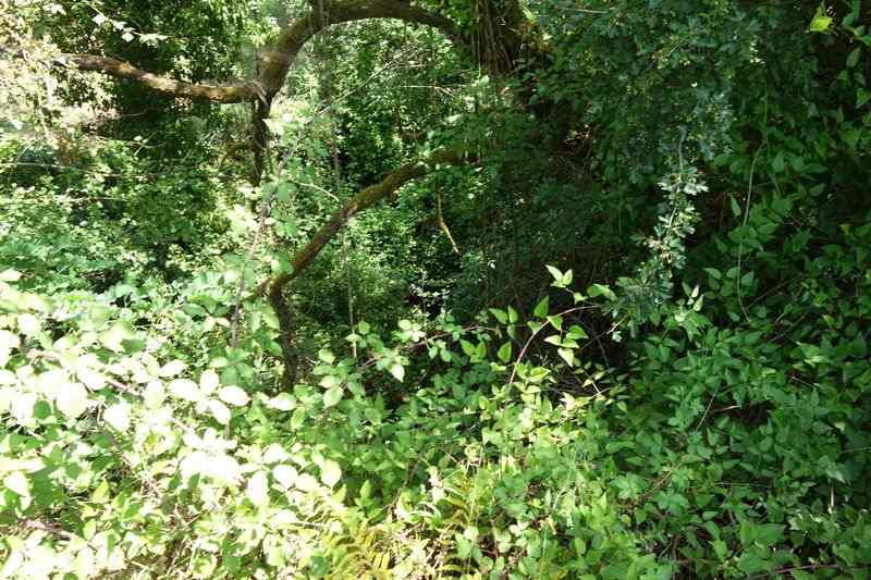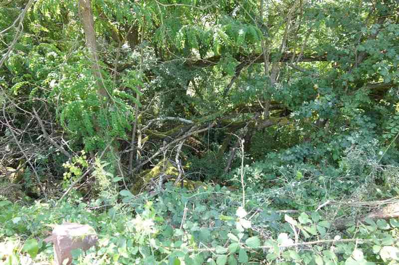 se faufile dans l'herbe, dominée par le mur de soutien de l'actuelle route de Donacoste,