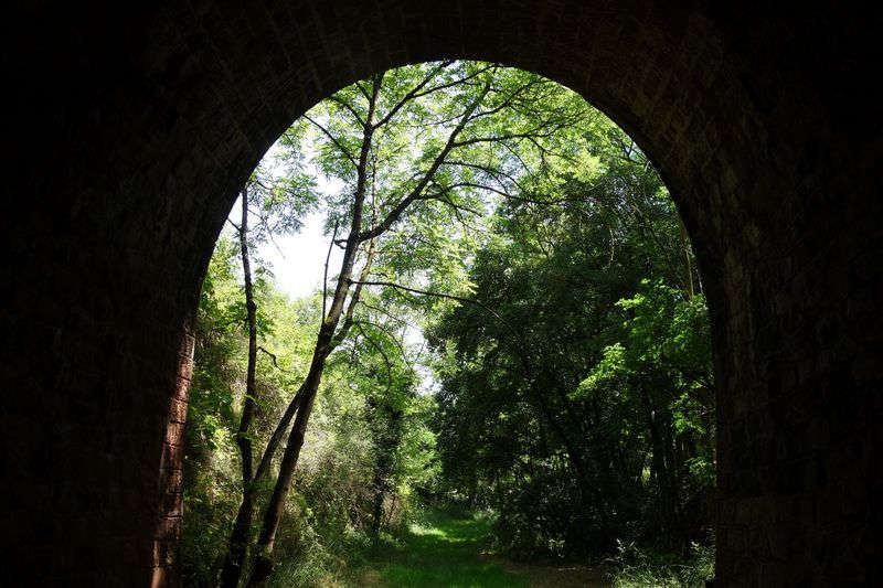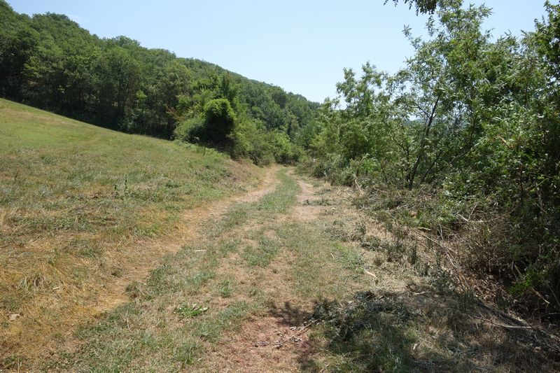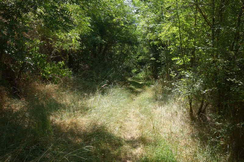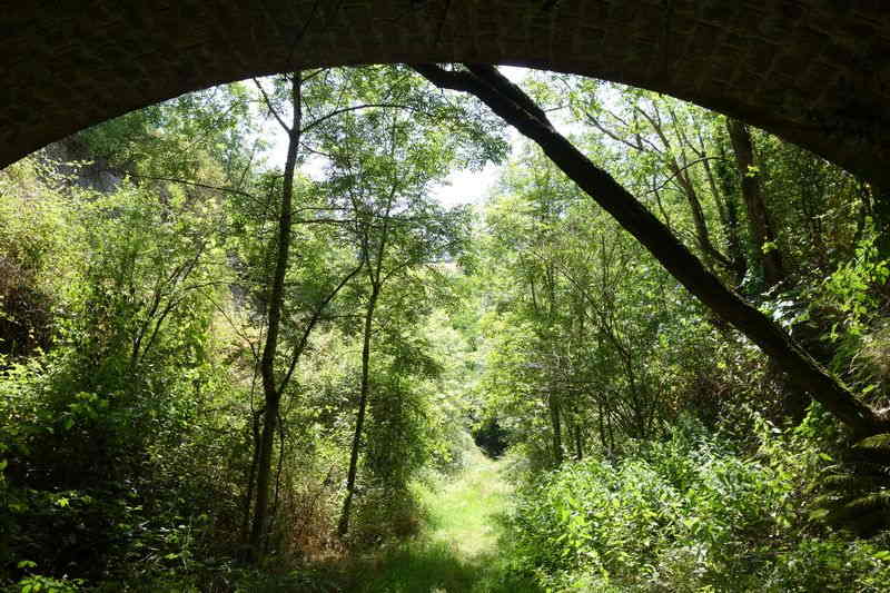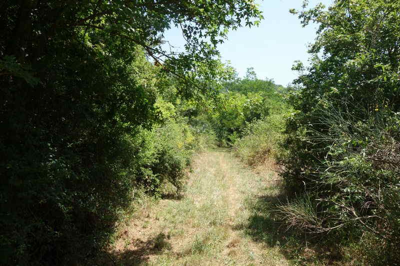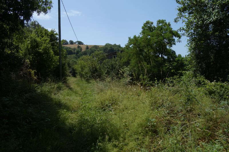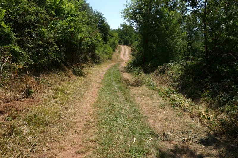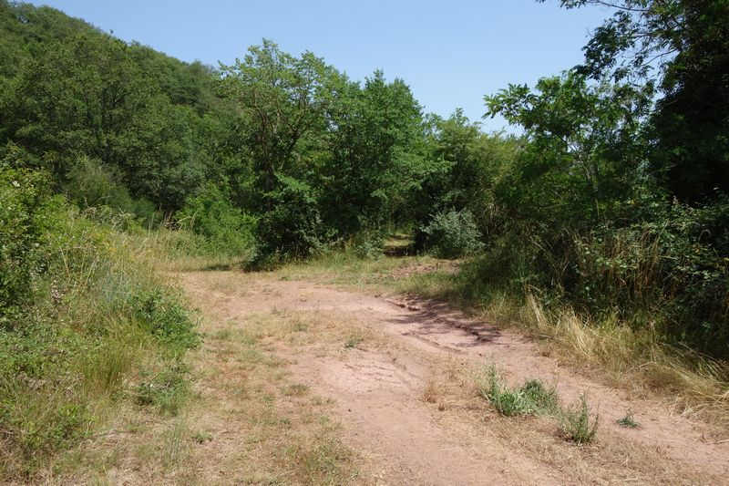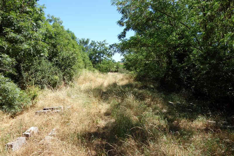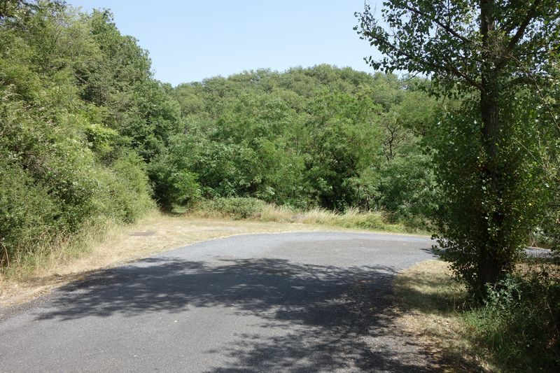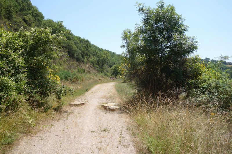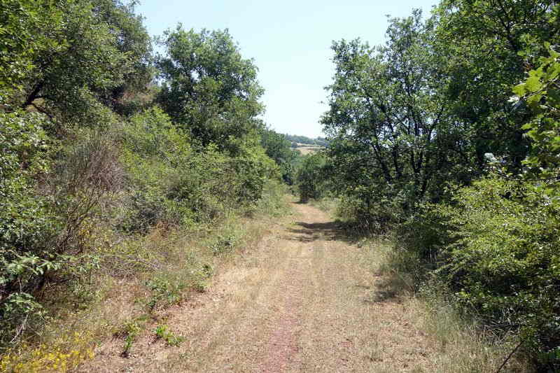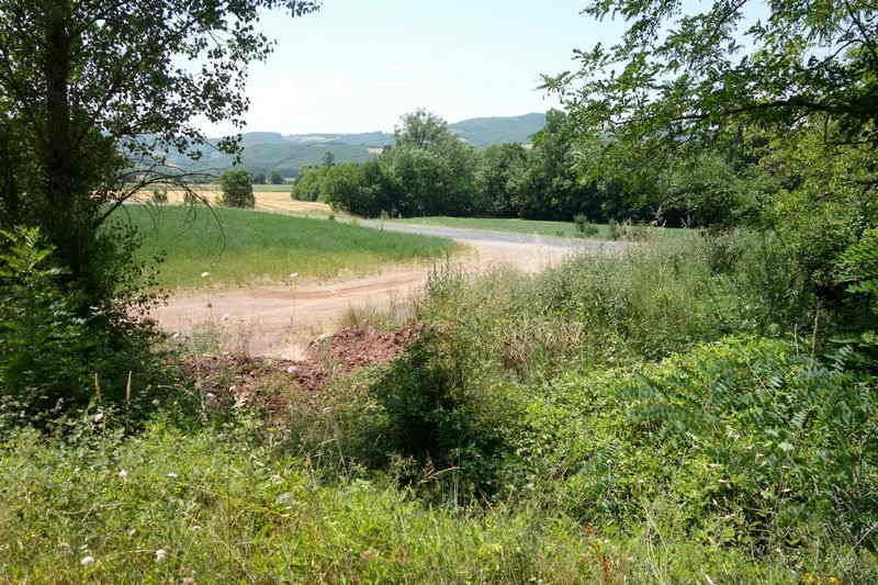 La plate-forme, au-delà du carrefour modifié, chemine à l'est en direction de Mas Granet et de la gare de Vabres.