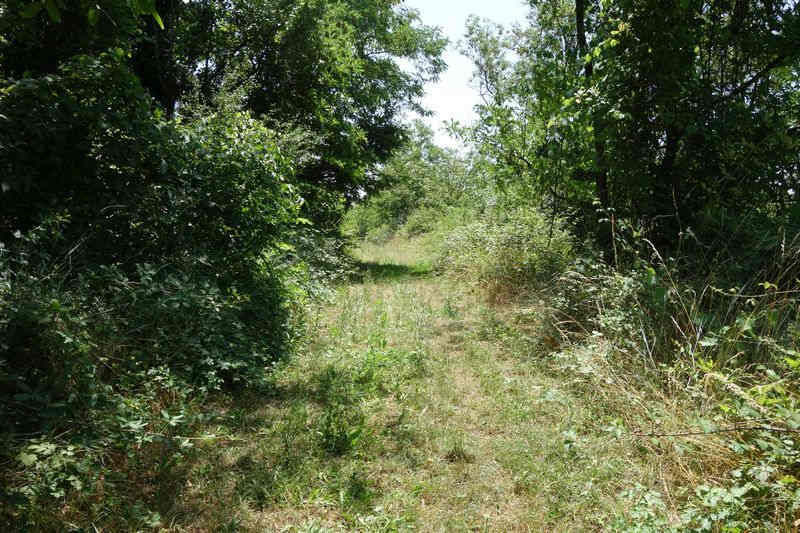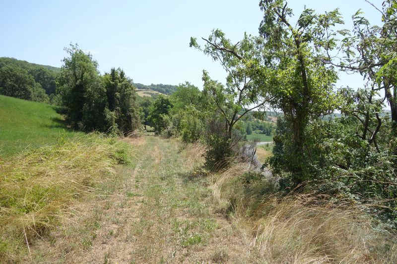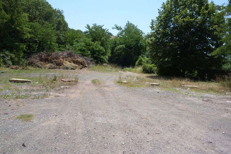 La plate-forme terrassée pour recevoir les bâtiments de la station de Saint-Izaire, le long du chemin de grande communication n° 5, entre le Mas de Souyris et Riols,