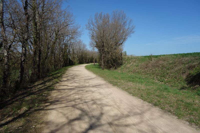 La chaussée en sable stabilisé poursuit la traversée du territoire de Jonquières.