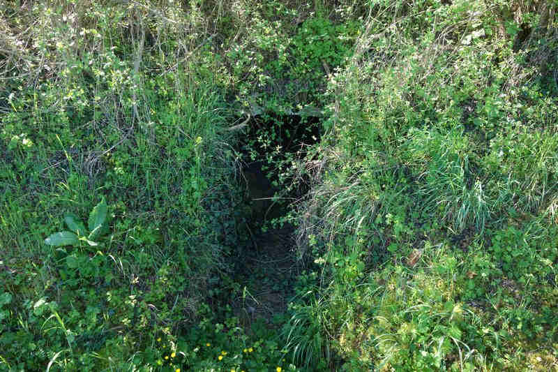 d'un passage à niveau, dont il ne reste plus, dans les fourrés, que la plaque