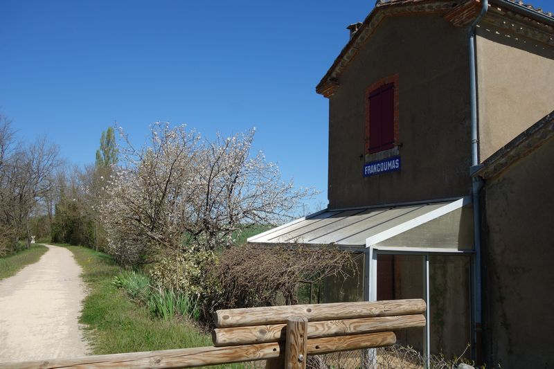 La halte de Françoumas, au-delà du passage à niveau, semble avoir pu supporter l'implantation d'une voie d'évitement.