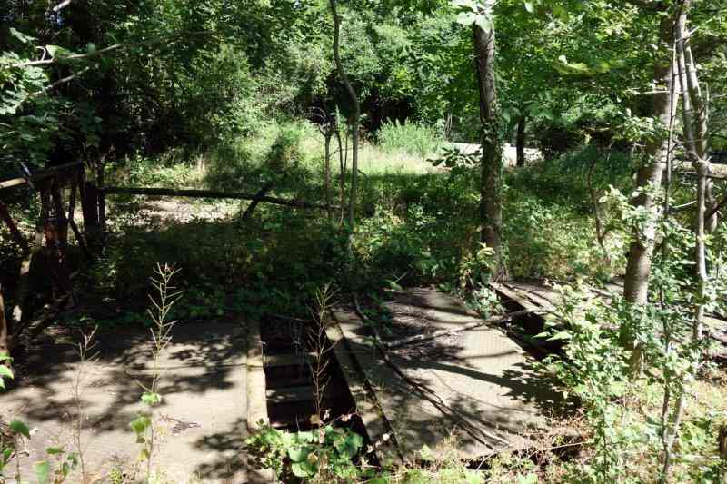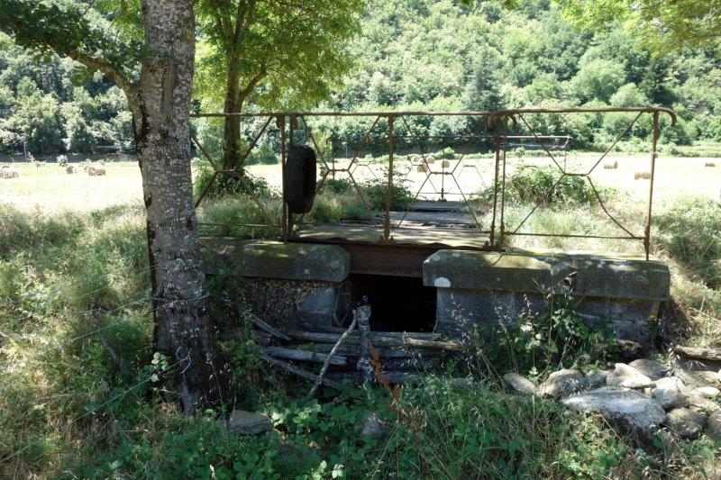 métallique rouillé d'un ex-pont-rail tendu au-dessus du ruisseau de Navet
