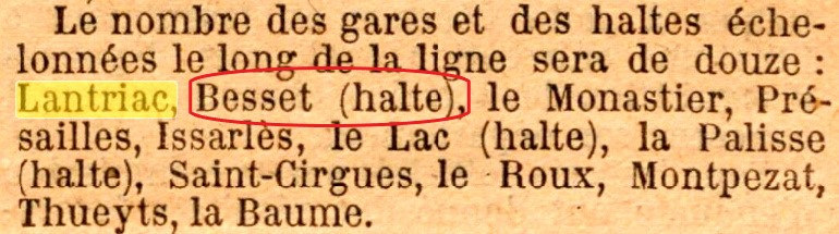 il n'était encore prévu qu'une halte du nom du hameau proche de Besset.