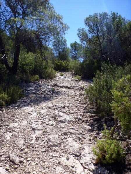 la croisée d'un sentier, la voie remonte vers un col qu'on pourrait