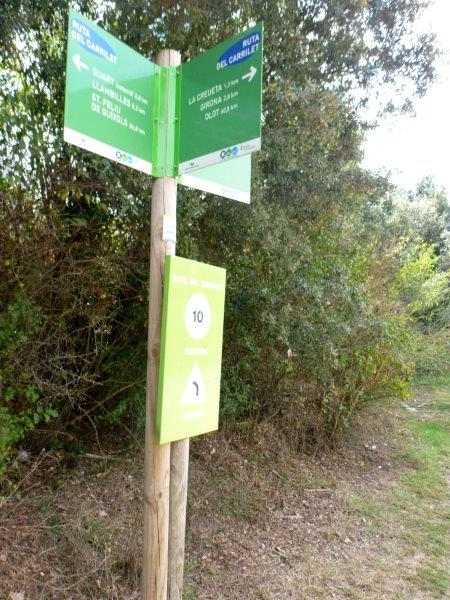 L'arrière d'un panonceau de la Ruta del Carrilet laisse