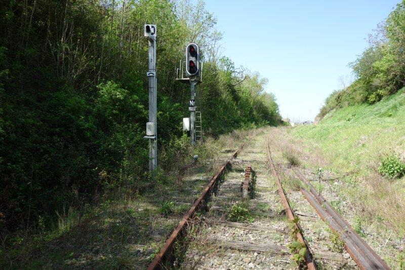 arrêtés par un carré aux deux feux rouges allumés.De la gare de Castelnaudary à la gare de Soupex